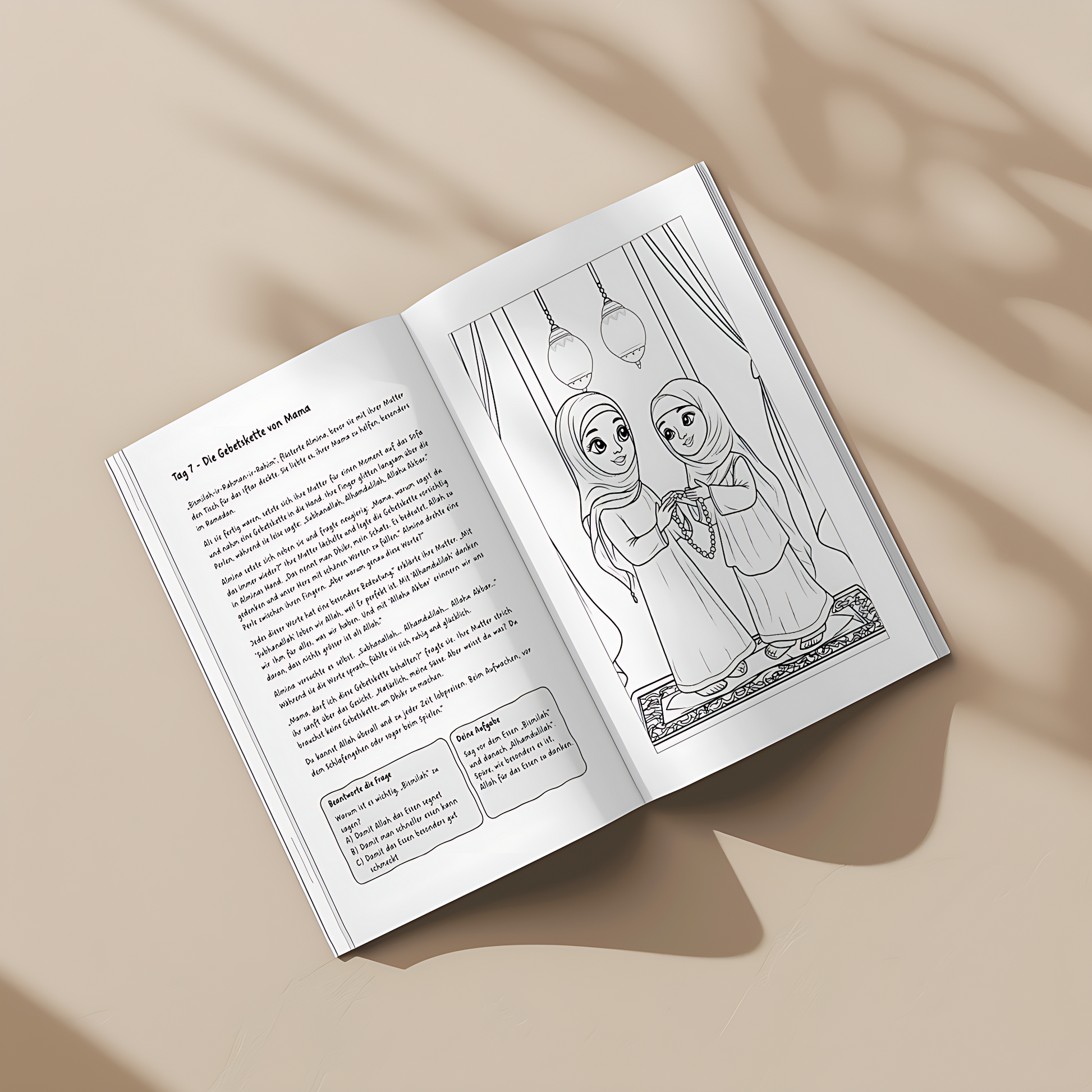 Entdecke inspirierende Geschichten, die wichtige islamische Werte vermitteln. Mit passenden Aufgaben und wunderschönen Malbildern lernen Kinder spielerisch, wie sie Freundlichkeit, Dankbarkeit und Barmherzigkeit in ihren Alltag integrieren können. Ein einzigartiges Geschichten- und Malbuch, das die Welt des Islam auf kreative und liebevolle Weise präsentiert.